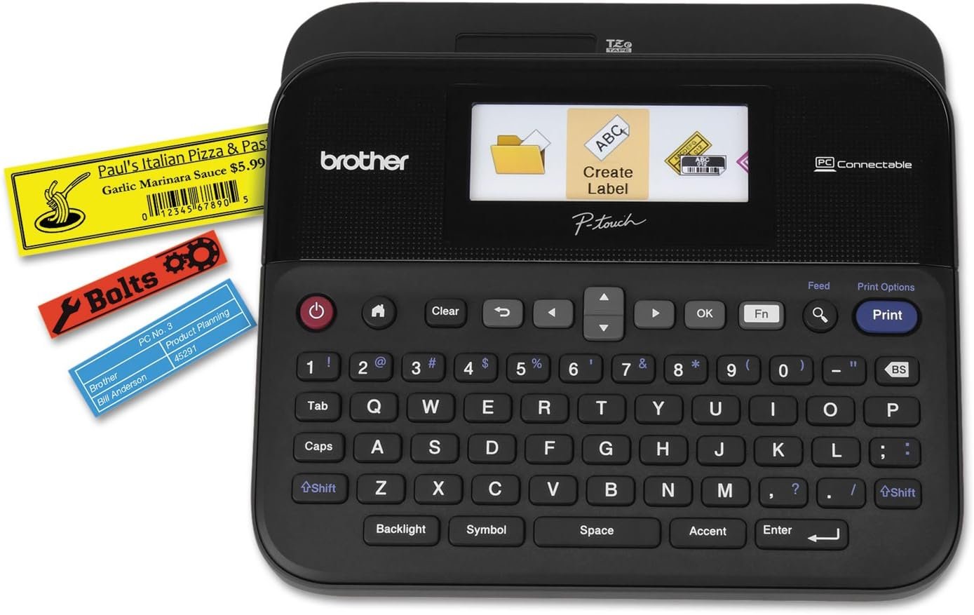 - Create labels using the wide easy type keyboard or connect to a PC or MAC for additional functionality