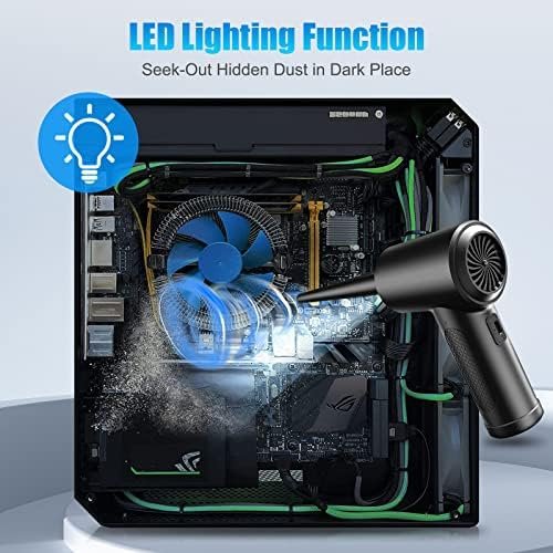 - LED Lights & Cordless Design: LED lights automatically illuminate when turned on electric air duster, allowing you to easily clean up dark corners, bringing great convenience to your cleaning. With its ergonomic shape and cordless design, it’s small, lightweight, comfortable to hold, and easy to carry around.