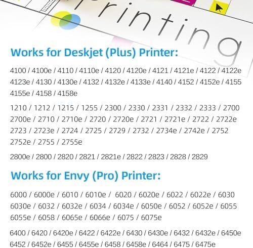 - Compatible Printer: For DeskJet 2734e, 1255, 2710e, 2720e, 2721e, 2722, 2722e, 2723e, 2724, 2725, 2732, 2742e, 2752e, 2755, 2755e, 2800, 2800e, 4110e, 4120e, 4121e, 4122e, 4123e, 4130e, 4132e, 4133e, 4152e, 4155e, 4158e; For DeskJet Plus 4122, 4132, 4155 Printer (other models are shown in the image).