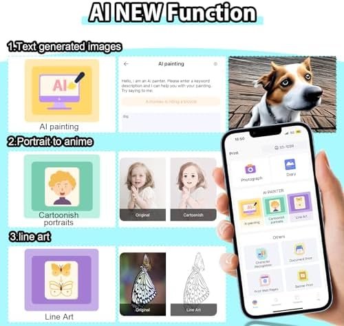 - AI Intelligent Printing Newly upgraded AI function, AI intelligent generation of images, AI photo conversion into cartoons, line art, etc. Enter the text description of the desired image and generate the desired image for printing. You can also convert portrait photos into cartoons through AI intelligent conversion for more fun printing