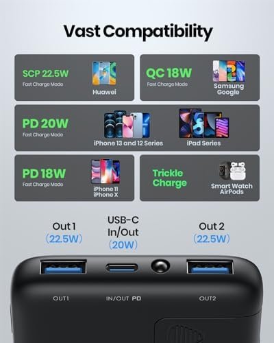 - 𝟮𝟮.𝟱𝐖 𝐒𝐩𝐞𝐞𝐝𝐲 𝐂𝐡𝐚𝐫𝐠𝐞: Combined with the most advanced PD 3.0 & QC4+ fast charging technologies, INIU 22.5W portable charger power bank can incredibly fast fuel your new iPhone from 0 to 65% in 30mins, 2X faster than traditional 2.4A chargers.