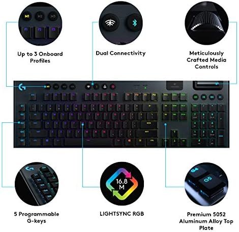 Logitech G915 Mechanical Gaming Keyboard, Low Profile GL Linear Key Switch