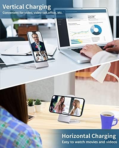 - Sleek and Modern Design 60 degrees fixed angle keeps your phone at the perfect angle to view an incoming message and notification, answer calls, touch screen without moving the iPhone.magnetic iphone charger works as a wake up alarm clock to check time as well. The wireless phone charger holds the phone vertically or horizontally, so you are able to adjust direction when watching videos or reading a recipe.
