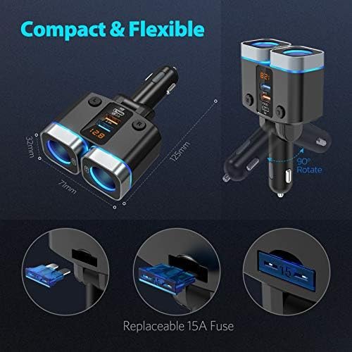 - Two 15A Spare Fuses: : Two high-quality 15A car charger fuses are included in this USB cigarette lighter adapter.