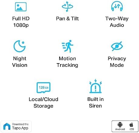 - Secure Local or Cloud Storage: Save footage continuously on up to a 128 GB microSD card (not included) or subscribe to Tapo Care for cloud storage which saves 30-day video history and provides additional benefits such as motion tracking and more.