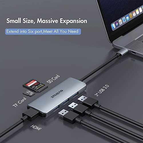 USB C Hub Adapter for MacBook Air, USB C HDMI Dongle for MacBook Pro, 6 in 1 USB