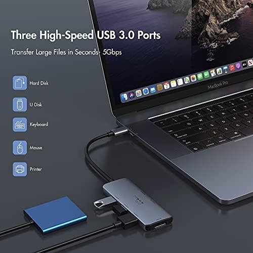 - 3 Super Speed USB 3.0 Ports: This USB C Macbook Air Dongle comes with three super speed usb 3.0 ports transfer data up to 5Gbps, support usb keyboard, mouse, usb driver, usb hard disks.