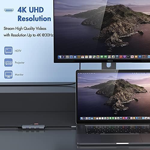 - 4K HDMI Adapter for MacBook Pro: This USB C to HDMI Multiport Adapter can mirror or extend your screen with the HDMI port, directly stream 4K UHD or Full HD 1080p video to HDTV, can reach to max resolution of HDMI 4K@( 3840x2160P)30Hz