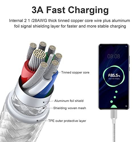 - USB C Charger Perfect Compatibility: We provide this (Blue 3ft/Green 3ft/Purple 6ft/Pink 6ft/White 10ft) 5-Pack Nylon Braided USB Type-C Cable . Compatible with all USB C devices, charger for Samsung Galaxy S22/S20/S20Plus/S20Ultra/S10/S10e/S9/S8, Note 20 10 9 8 Plus/S8+, LG G6,G5,V30,V20, LG Nexus 5X , Lumia 950, Lumia 950XL,Huawei P50 40 30 20/Mate40 Pro/nova 8 Pro and other usb type c cable device.