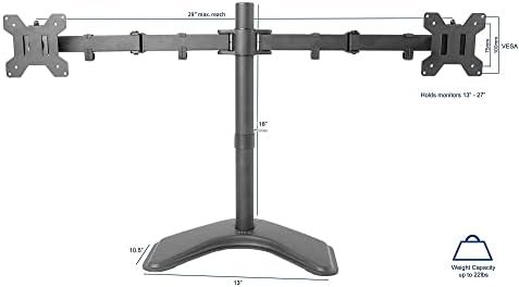 - Heavy Duty Base – Measures 13″ x 10.5″ providing solid stability while monitors are held within its center of gravity. The bottom of the base features padding to protect your desk from scratches.